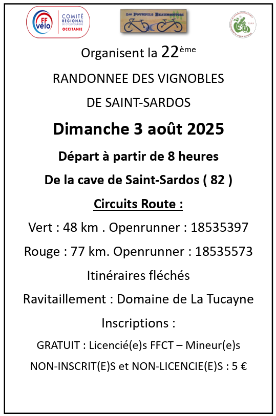 Dimanche 3 (Départ: 8h): Randonnée des Vignobles de Saint-Sardos, organisée par les Poumpils Beaumontois.